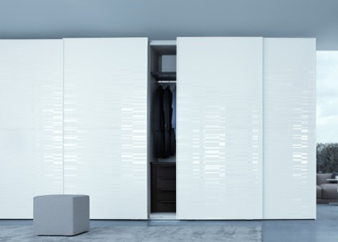 : ตู้เสื้อผ้าบานเลื่อนไม้ทำสีพ่นขาวภายในสีขาว |
