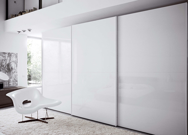 :ตู้เสื้อผ้าบานเลื่อนไม้ทำสีพ่นขาวภายในสีขาว |