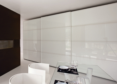 ตู้เสื้อผ้าบานเลื่อนไม้ปิดกระจกสีขาว ภายในสีขาว |