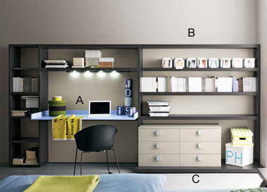 :โต๊ะโครงไม้ทำสีพ่นขาวฟ้า ตู้หนังสือทำสีเทาดำ
